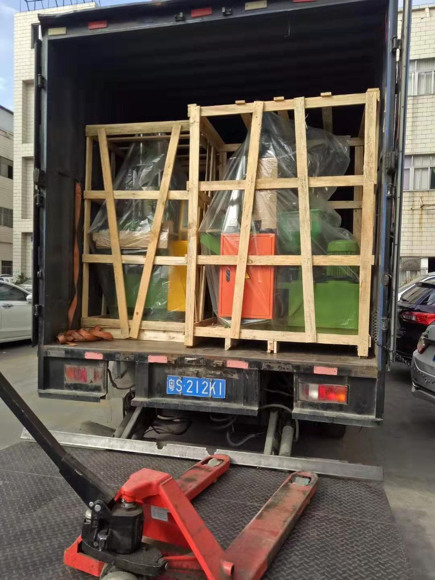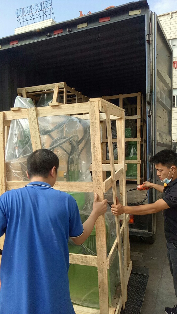 ,幾個裝(zhuang)車師傅把(ba)立式注塑(su)機打包好(hǎo),裝入貨車(chē)中,随即🐆貨(huo)♈車發出。